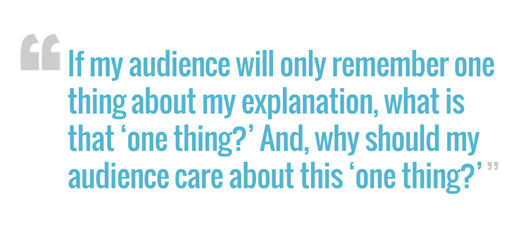 - If my audience will only remember one thing about my explanation, what is that “one thing?”