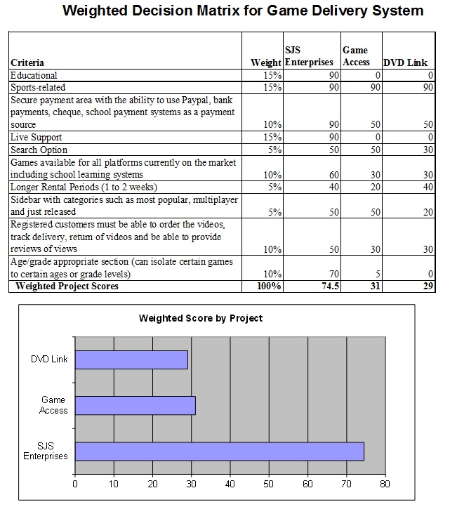 Figure 7.4: Weighted Decision Matrix for Game Delivery Project. [Image description]